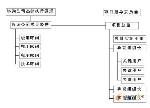整個組織結(jié)構(gòu)分三層,咨詢公司可以在每一層都安排相應人員予以支持。最高層為項目指導委員會,具有高度決策權(quán)。一般由總經(jīng)理主持,企業(yè)有關(guān)高層經(jīng)理和項目總監(jiān)作為成員。