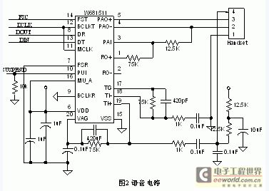 IP電話的原理圖如圖1所示。它由Tiger560B和W681511及其外圍設備和接口組成。主要電路有:語音電路、LCD顯示電路、鍵盤電路。