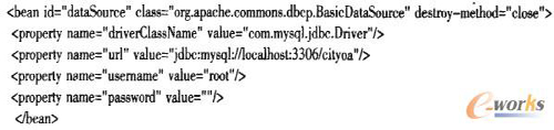 與本地開發(fā)不同的是云計(jì)算平臺(tái)下,由于服務(wù)器采用虛擬主機(jī)技術(shù),無法像本地服務(wù)器那樣配置數(shù)據(jù)庫連接池,因此需要CRM系統(tǒng)自己管理數(shù)據(jù)庫連接池。本系統(tǒng)使用Spring管理下的數(shù)據(jù)庫連接池,運(yùn)用Apache開源DBCP框架配置連接池代碼如下: