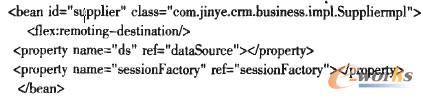 業(yè)務(wù)層對(duì)象用于實(shí)現(xiàn)CRM系統(tǒng)業(yè)務(wù)方法,其采用面向接口設(shè)計(jì)原則,由Spring管理實(shí)現(xiàn)類對(duì)象,并注入持久層的HibernateSessionFactory對(duì)象,業(yè)務(wù)對(duì)象配置代碼如下: