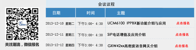 | 周二UCM專場報名 周三IP電話專場報名 周四網(wǎng)關專場報名 | ||||||
