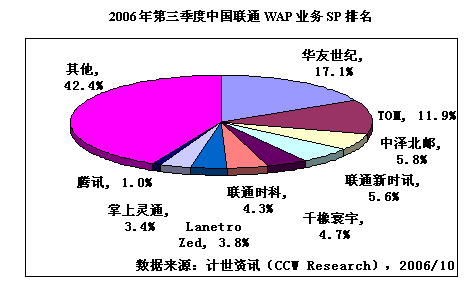 2006年第三季度中國(guó)移動(dòng)WAP業(yè)務(wù)SP排名