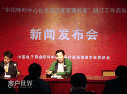 2月7日,中國電子商會呼叫中心與客戶關系管理專業(yè)委員會(CNCCA)在北京信息產業(yè)部萬壽路辦公區(qū)召開“中國呼叫中心技術及運營管理規(guī)范”制訂工作啟動新聞發(fā)布會。在京各主要新聞媒體高度關注在國家宏觀政策轉向服務外包的大背景下,呼叫中心中國標準的出臺將為產業(yè)的發(fā)展和國際競爭格局的變化帶來如何的影響。呼叫中心行業(yè)各知名廠商、運營商、服務提供商代表出席新聞發(fā)布會。會議同時發(fā)布了《2007年中國呼叫中心運營標桿管理報告》。