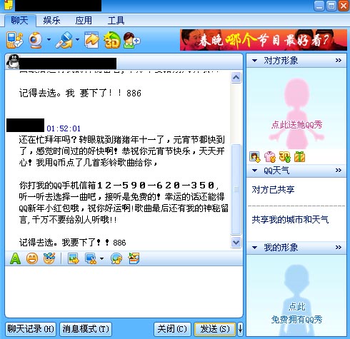 3月4日北京報道 如果你收到QQ好友發(fā)過來的撥打12590點播元宵節(jié)祝福的信息,千萬不要信以為真,這僅是一些不良SP廠商斂財的一種手段。