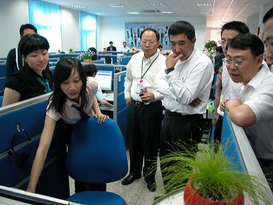 6月11日下午,省公司總經(jīng)理廖康、副總經(jīng)理鄭成渝一行前往呼叫中心視察,在認真聽取了實業(yè)公司郭志豪總經(jīng)理和相關負責人對呼叫中心的運營模式、業(yè)務流程及管理結(jié)構等情況的詳細介紹后,廖總對呼叫中心下一步的發(fā)展提出了三個方面的建議和要求。一是要準確把握呼叫中心面向市場、面向社會,成為全省話務服務商的市場定位;二是要與主業(yè)公司多聯(lián)系、多溝通,建立與主業(yè)業(yè)務相銜接的業(yè)務流程,搭建支撐主業(yè)業(yè)務的平臺;三是要注重企業(yè)品牌的創(chuàng)建工作,下功夫?qū)艚兄行牡钠髽I(yè)品牌進行塑造。