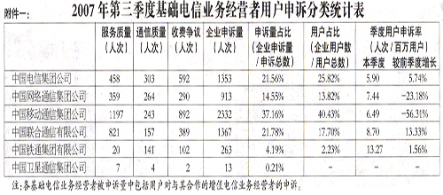為加強(qiáng)社會(huì)監(jiān)督,推進(jìn)電信服務(wù)質(zhì)量持續(xù)改善,根據(jù)《中華人民共和國(guó)電信條例》相關(guān)規(guī)定,現(xiàn)將2007年第三季度電信服務(wù)質(zhì)量有關(guān)情況公布如下。