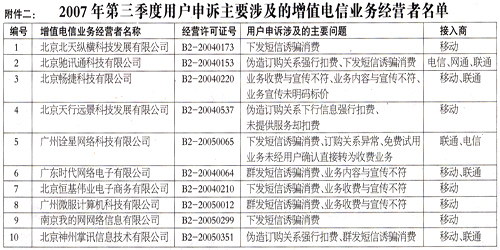 | 增值電信業(yè)務(wù)經(jīng)營(yíng)許可證年檢“不合格”企業(yè)名單公布 2007-10-26 |