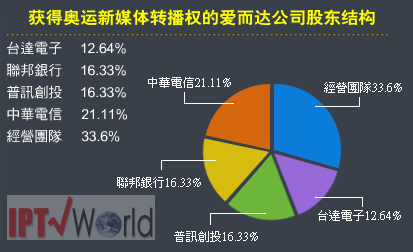 據(jù)IPTVWorld了解,2008年第29屆北京奧運(yùn)比賽轉(zhuǎn)播權(quán)臺(tái)灣區(qū)網(wǎng)絡(luò)與手機(jī)平臺(tái)轉(zhuǎn)播權(quán)。國(guó)際奧委會(huì) (IOC)除了證實(shí)這項(xiàng)消息,也表示,經(jīng)過(guò)度。另外,鑒于愛(ài)爾達(dá)在美國(guó)職棒等運(yùn)動(dòng)賽事和韓劇等數(shù)字內(nèi)容版權(quán)經(jīng)營(yíng)與后制服務(wù)擁有豐富的實(shí)務(wù)經(jīng)驗(yàn),中華電在今年4月進(jìn)一步以溢價(jià)參與愛(ài)爾達(dá)增資,取得21%的股權(quán),成為愛(ài)爾達(dá)除了經(jīng)營(yíng)團(tuán)隊(duì)外最大的股東。