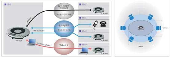 PJP-300V產(chǎn)品組合除單獨可以作為高音質(zhì)標清的專業(yè)視頻會議系統(tǒng)應用外,還具有很強的擴展性,諸如與網(wǎng)絡會議軟件,視頻會議機頂盒組合應用實現(xiàn)大規(guī)模視頻會議系統(tǒng)解決方案。