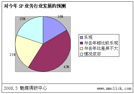 魅媒無線調研中心認為:由于前期政府以及運營商對SP行業(yè)的相關整頓效果明顯,相關的制度、措施以及管理系統(tǒng)上線后,SP違規(guī)的風險已經(jīng)越來越大,行業(yè)自律狀態(tài)較之前有明顯的改善。但是由于部分的制度明顯存在矯枉過正現(xiàn)象,不少的措施嚴重影響到用戶的體驗,而且對SP管理一直出于消極的狀態(tài),需要不斷調整。