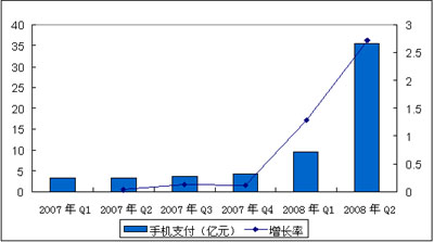 隨著手機(jī)支付業(yè)務(wù)的成熟以及產(chǎn)業(yè)鏈的完善,2008年第一季度,手機(jī)支付業(yè)務(wù)迎來(lái)了發(fā)展的一個(gè)高峰,在第二季度,由于賑災(zāi)募捐通道的打開,手機(jī)支付有了一個(gè)爆炸性的增長(zhǎng),在手機(jī)捐款中,手機(jī)支付的便利性和即時(shí)性優(yōu)點(diǎn)得到了極大展現(xiàn)。