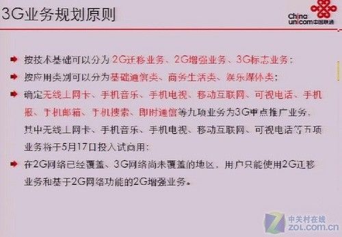前不久,有論壇網(wǎng)友曝光了幾張聯(lián)通內(nèi)部3G培訓(xùn)所用的PPT截圖,其中不僅提到了聯(lián)通3G業(yè)務(wù)的運(yùn)營(yíng)方式,2G/3G同名業(yè)務(wù)的關(guān)系,還再一次強(qiáng)調(diào)了聯(lián)通將重點(diǎn)推廣的3類九項(xiàng)主要3G業(yè)務(wù)。這和筆者前段時(shí)間為大家曝光的《官方Flash動(dòng)畫:解析聯(lián)通3G九大特色業(yè)務(wù)》所提到的聯(lián)通9大特色3G業(yè)務(wù)保持一致。