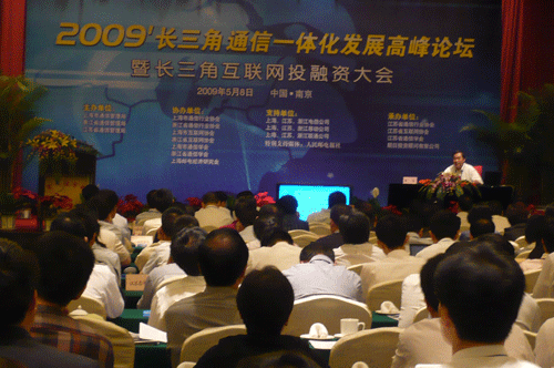 2009年5月8日,由上海、江蘇、浙江三省(市)通信管理局主辦,江蘇省通信行業(yè)協(xié)會、互聯(lián)網(wǎng)協(xié)會、通信學(xué)會、南京朗日投資顧問的限公司聯(lián)合承辦,滬浙兩地行業(yè)協(xié)會、互聯(lián)網(wǎng)協(xié)會、通信學(xué)會以及三省電信、移動、聯(lián)通通信運營公司全力支持打造的“2009’長三角通信一體化發(fā)展高峰論壇”暨“09’長三角互聯(lián)網(wǎng)投融資大會”在南京舉行。