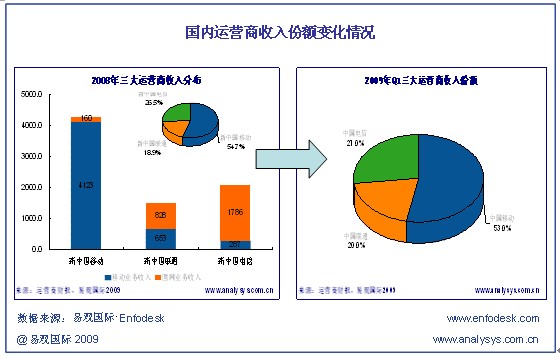 作為2008年度電信業(yè)內(nèi)最大的兩件大事,重組和3G牌照的發(fā)放不僅拉開了全業(yè)務(wù)競爭的序幕,而且為國內(nèi)電信市場的競爭注入了新的活力,一方面提供了讓電信業(yè)競爭逐漸趨于平衡的發(fā)展契機(jī),從另一方面也同時帶來了大量的消費(fèi)需求。