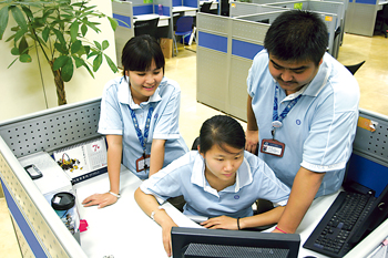 “玉不琢,不成器!彪m說目前社會的就業(yè)壓力源自于復雜的社會原因,可是在客服中心人力資源室的陳依群主管看來,有些還在于80后年輕人的自身原因!斑@些年我做招聘工作以來,看到了一些年輕人抱著希望進來以后,因為受不了壓力又退出了。在就業(yè)壓力巨大的情況下,多是獨生子女的80后一代,還沒有完全樹立起正確的就業(yè)觀和務實的工作態(tài)度。我們的原則是,凡是進入我們公司的員工和見習學生,都要經(jīng)歷嚴格的培訓,接受規(guī)范的管理,接受我們公司企業(yè)文化的熏陶。通過見習,我們也發(fā)現(xiàn)了很多真正會發(fā)光的優(yōu)秀人才。”