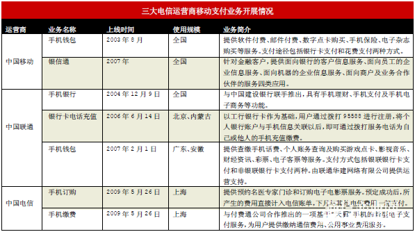 (三大電信運(yùn)營(yíng)商移動(dòng)支付業(yè)務(wù)開展情況)
