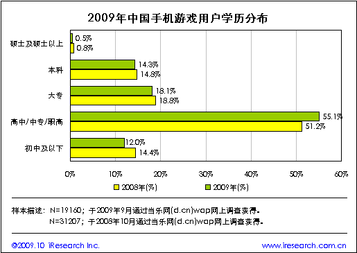 2009年手機(jī)游戲用戶以男性和青少年為主