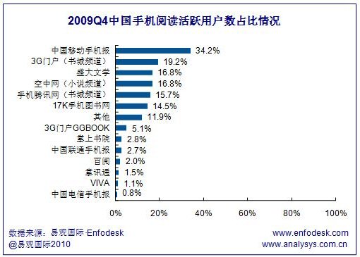 2009年Q4中國手機(jī)閱讀市場(chǎng)用戶活躍度進(jìn)一步提升