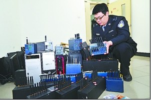 3月23日凌晨5時許,警方兵分五路,一舉搗毀位于西城、石景山、通州等地的5個群發(fā)窩點(diǎn),抓獲四川籍向某、河南籍徐某等8名嫌疑人,同時繳獲了涉案手機(jī)短信群發(fā)器62臺、臺式電腦15臺、筆記本電腦2臺、用于短信群發(fā)的電話卡4000余張。