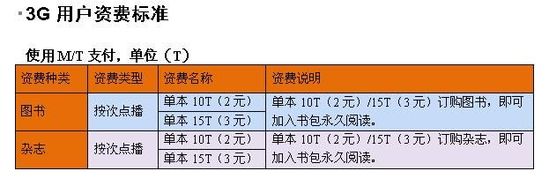 據(jù)了解,中國聯(lián)通手機(jī)閱讀業(yè)務(wù)只針對聯(lián)通網(wǎng)內(nèi)手機(jī)用戶,采用按次點(diǎn)播(按本訂購)的資費(fèi)標(biāo)準(zhǔn)。同時,2G用戶和3G用戶采用不同的支付方式,2G用戶使用手機(jī)話費(fèi)支付,3G用戶使用M/T支付。