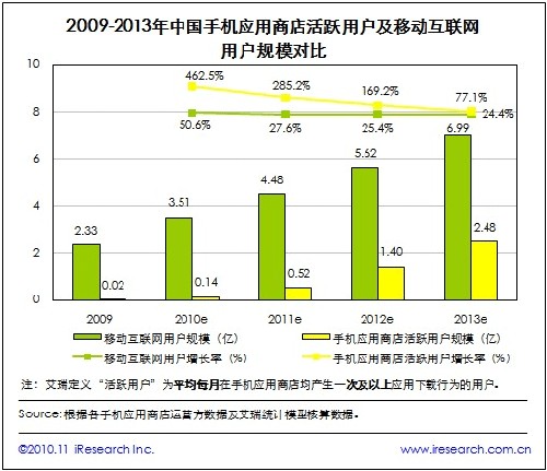 2010年中國(guó)手機(jī)應(yīng)用商店用戶增速遠(yuǎn)超移動(dòng)互聯(lián)網(wǎng)