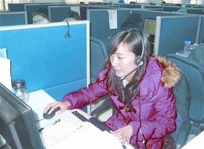 圖:1月12日,國壽財險電子營銷中心工作人員在接聽電話。