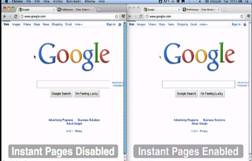 Instant Pages即時搜索網(wǎng)頁這一新功能,將會加快網(wǎng)頁打開的速度。此項(xiàng)功能目前只限于谷歌Chrome Web瀏覽器。用戶鍵入搜索內(nèi)容的同時,相關(guān)網(wǎng)頁便開始自行打開,點(diǎn)擊這些網(wǎng)頁鏈接即可省下等待時間。這項(xiàng)功能昨日開始公測。