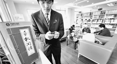 2010年4月16日下午,國內(nèi)首個G3閱覽室在杭州市下城區(qū)圖書館內(nèi)建成并免費(fèi)開放,實(shí)現(xiàn)了移動信息技術(shù)與公共圖書館的有機(jī)結(jié)合。圖為讀者正在G3閱覽室里通過G3手機(jī)閱讀器免費(fèi)閱讀。