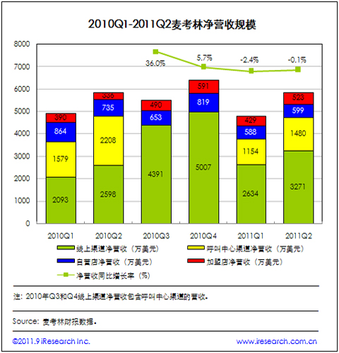 麥考林業(yè)務(wù)調(diào)整 2011Q2線上渠道凈營(yíng)收同比增長(zhǎng)25.9%