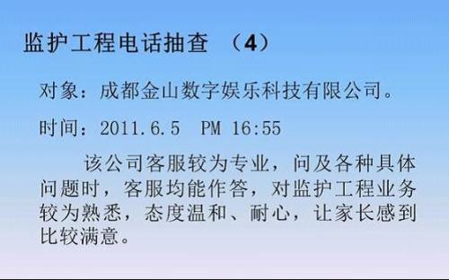金山游戲客服經(jīng)過6年多的發(fā)展,客服的服務(wù)水準(zhǔn)和管理日趨完善。楊靜一表示,金山客服的服務(wù)理念是“金色心服務(wù)”,“金色”代表陽光、溫暖,“心”代表真誠(chéng)、用心,金色“心”服務(wù)就是真誠(chéng)用心地為玩家服務(wù),讓玩家在服務(wù)中感受到陽光與溫暖。
