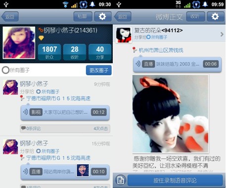 今年9月6日,夢(mèng)想兄弟正式發(fā)布基于移動(dòng)互聯(lián)網(wǎng)的社交工具語(yǔ)音微博,這款軟件結(jié)合了微博收聽(tīng)人物、話題及智能手機(jī)特有的地理位置服務(wù)等元素,用戶可以實(shí)現(xiàn)直接錄音發(fā)布語(yǔ)音信息的功能,并且不收取任何費(fèi)用,僅消耗流量。