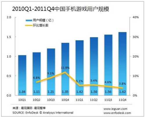 2011年第4季度手機(jī)游戲市場收入11億元