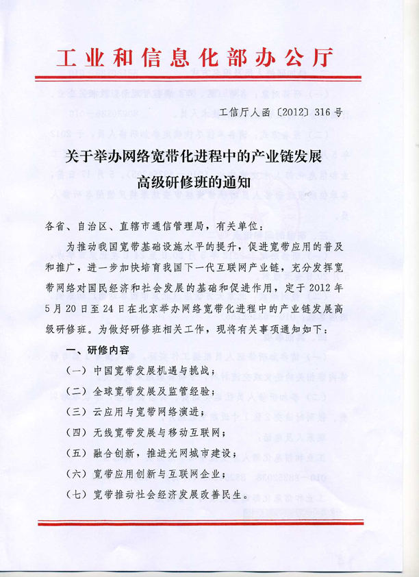 工信部:網(wǎng)絡(luò)寬帶化進(jìn)程中的產(chǎn)業(yè)鏈發(fā)展高級(jí)研修班