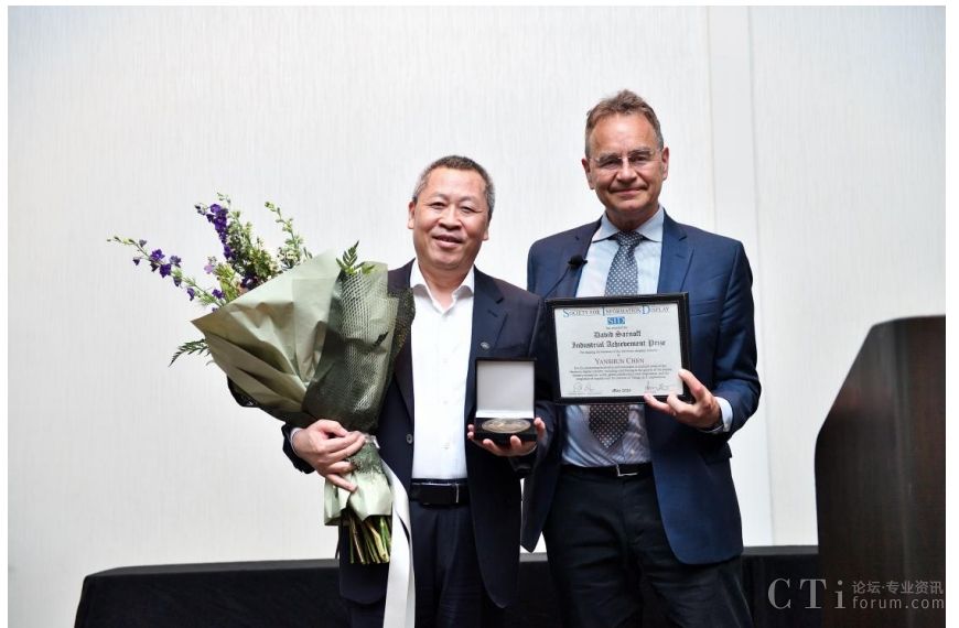 David Sarnoff產(chǎn)業(yè)成就獎設(shè)立于2018年,每年僅授予全球顯示產(chǎn)業(yè)的一位杰出領(lǐng)袖,以表彰其卓越領(lǐng)導(dǎo)力和長遠(yuǎn)影響。陳炎順董事長在發(fā)表獲獎致辭時表示,感謝SID榮譽(yù)與獎項委員會授予的此項榮譽(yù),并特別感謝業(yè)界伙伴的支持以及全體京東方人為此刻榮譽(yù)的不懈努力!榮譽(yù)屬于全體京東方人!五年來,京東方始終保持著創(chuàng)新不斷的步伐,特別是我們深刻的洞察半導(dǎo)體顯示和相關(guān)技術(shù),比如物聯(lián)網(wǎng)技術(shù)、數(shù)字技術(shù)、人工智能技術(shù),尤其針對目前快速發(fā)展的IOT技術(shù)的融合趨勢,創(chuàng)新性提出“屏之物聯(lián)”的發(fā)展戰(zhàn)略,為半導(dǎo)體顯示產(chǎn)業(yè)發(fā)展打開廣闊的空間和無限的可能,也為科技企業(yè)的戰(zhàn)略升維提供了思維邏輯和方法論!
