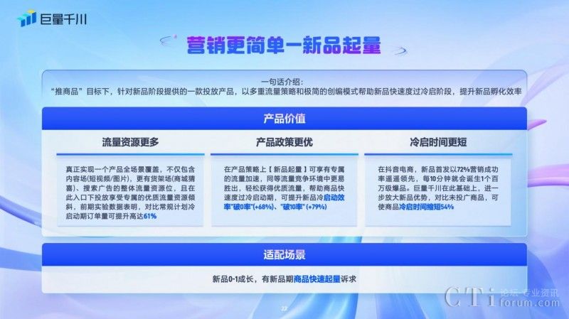 對(duì)于在618好物節(jié)期間想借助流量上行期推新品的商家,「新品起量」助力商家在推商品階段,以多重流量策略和極簡(jiǎn)的創(chuàng)編模式幫助新品快速度過冷啟階段,提升新品孵化效率,讓營(yíng)銷變得更簡(jiǎn)單。前期實(shí)驗(yàn)數(shù)據(jù)表明,對(duì)比常規(guī)計(jì)劃冷啟動(dòng)期訂單量可提升61%。