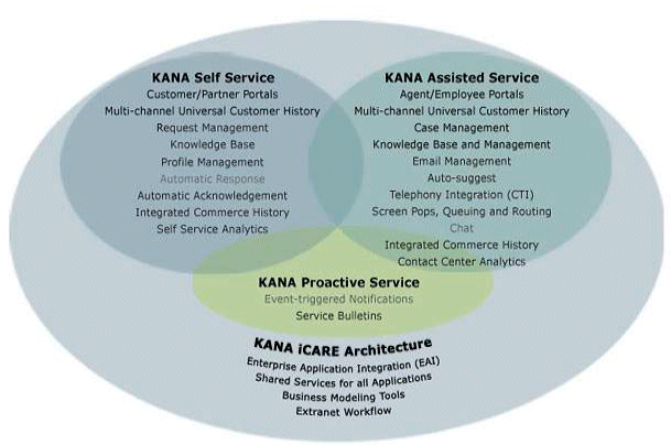 KANA的客服解決方案就是答案——KANA提供第一流的互聯(lián)網(wǎng)架構的服務解決方案,支持自助服務(Self Service),主動服務(Proactive Service)和幫助服務(Assisted Service),綜合呼叫管理,電腦電話整合技術,并整合了知識管理和知識倉庫,案例管理和綜合分析功能。