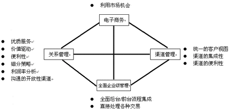本文中,將針對國外金融企業(yè)對CRM的看法,提出一種全面的對CRM的看法,我們將從四個(gè)角度來描述,它們分別是電子商務(wù)(E-business)、渠道管理(Channel management)、關(guān)系管理(Relationships)、全面企業(yè)級管理(Management of the total enterprise),取第一個(gè)字母組合為ECRM。