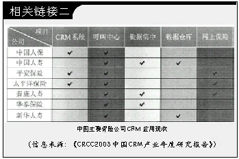 據(jù)某IT媒體2002年末的調(diào)研,只有不到1/5的中國(guó)保險(xiǎn)公司擁有客戶關(guān)系管理系統(tǒng),但是近六成的保險(xiǎn)公司計(jì)劃在近期內(nèi)實(shí)施CRM;另一份調(diào)查則顯示中國(guó)保險(xiǎn)業(yè)過去3年的IT投入平均達(dá)到9.36億元,幾乎所有的保險(xiǎn)公司都在從不同側(cè)面開展CRM建設(shè)。CRM在中國(guó)保險(xiǎn)業(yè)的應(yīng)用,到底是處于落伍還是冒進(jìn)狀態(tài),成為一個(gè)意味深長(zhǎng)的話題。