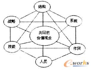 按照麥肯錫以及科特勒的綜合觀點,前面三個要素——戰(zhàn)略、結(jié)構(gòu)和系統(tǒng)被認(rèn)為是最成功的硬S;后面四個要素——作風(fēng)、人員、技能和共同的價值觀念是軟S。每個組織都和總體環(huán)境的某個部分相互影響,相互作用,并且把這一部分成為相關(guān)環(huán)境并指出最能適應(yīng)環(huán)境的公司必將獲得成功。