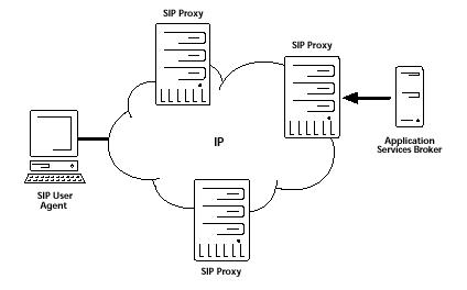 用戶終端程序往往需要包括用戶代理客戶機(jī)和用戶代理服務(wù)器。代理服務(wù)器、重定向服務(wù)器 和注冊服務(wù)器可以看作是公眾性的網(wǎng)絡(luò)服務(wù)器。在SIP中還經(jīng)常提到"定位服務(wù)器"的概念,但是定位服務(wù)器不屬于SIP服務(wù)器。SIP服務(wù)器請求定位服務(wù)的方式也不在SIP的討論范圍之內(nèi)。其在IP網(wǎng)絡(luò)中的實現(xiàn)如下所示。
