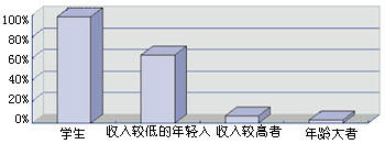 消費者根據(jù)文化程度和職業(yè)的不同,對IP電話的認可也不一樣,其中,學(xué)生和年輕的上班族的認知率是最高的,這和他們的收入以及較易接受新事物有關(guān)。學(xué)生的收入較低,年輕的上班族中不少人的收入不高,同時他們也是長途電話的主要使用者之一。對于那些高收入的消費者來說,IP電話所節(jié)省的費用必要性不大,而很多話費可以報銷,IP電話使用又不方便,因此他們一般不使用IP電話。而對于年齡較大的消費者來說,IP電話的不方便使用是最主要的原因之一。圖5是個人消費者對IP電話的使用程度比較。