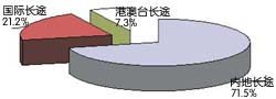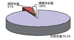 ● 中國(guó)IP電話國(guó)際長(zhǎng)途通話時(shí)長(zhǎng)已經(jīng)占到國(guó)際長(zhǎng)途話務(wù)量的20%,分流了大批的國(guó)際話務(wù)量,這也是固定電話國(guó)際長(zhǎng)途話務(wù)量和港澳臺(tái)長(zhǎng)途話務(wù)量出現(xiàn)負(fù)增長(zhǎng)的主要原因。