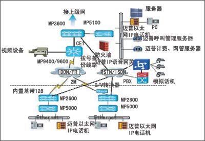 該方案中,整個網(wǎng)絡(luò)構(gòu)建基本上在原有網(wǎng)絡(luò)基礎(chǔ)之上進(jìn)行搭建,沒有影響到原有網(wǎng)絡(luò)的重建,同時還充分利用了原有的路由IP功能,優(yōu)化了網(wǎng)絡(luò)結(jié)構(gòu)。邁普IP語音設(shè)備完全遵循H.323標(biāo)準(zhǔn)設(shè)計,可以完全同其它標(biāo)準(zhǔn)設(shè)備廠商兼容,如Cisco以太網(wǎng)電話機、路由器IP語音模塊等。為了充分保證用戶投資,設(shè)計時充分考慮前向兼容已有產(chǎn)品(如路由器IP語音模塊),后向兼容未來產(chǎn)品(如邁普高密度語音網(wǎng)關(guān)、邁普以太網(wǎng)電話機等)。該方案有高效的成本控制能力,MyPower