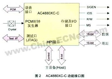 作為本系統(tǒng)中的核心部分,語(yǔ)音處理采用以色列audiocodes公司生產(chǎn)的專(zhuān)用多通道語(yǔ)音處理芯片ac4880xc-c。它具有以下特點(diǎn):