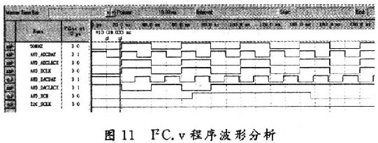 AUD_ADCDAT與AUD_DACDAT分別為I2C總線的輸入輸出,由圖11中可見(jiàn)其延遲為9.033 ns,實(shí)現(xiàn)了語(yǔ)音數(shù)據(jù)的實(shí)時(shí)處理。