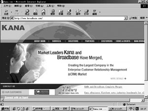 Kana是美國在線服務領域的知名公司,其eCRM軟件在客戶關系管理領域極具代表性。Kana公司剛開始只提供電子郵件響應管理技術,但是通過一系列的收購舉措,Kana已經可以提供端到端的客戶服務解決方案。最近,Kana并購了美國Broadbase公司,成為在線客戶服務領域的“巨頭”。該公司的旗艦級產品主要是針對Email回復的客戶服務系統(tǒng),Kana的Email客戶服務軟件被Yahoo!和AOL等著名的網絡公司采用。