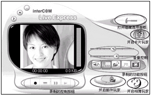 動(dòng)態(tài)視頻EMAIL,用這個(gè)軟件可以采用發(fā)送電子郵件的方式,將您的音容笑貌傳送到親朋好友的郵箱中,讓遠(yuǎn)方的她收到可“動(dòng)”的你。我們還是以?shī)W美嘉公司的CD370電腦相機(jī)為例向大家介紹這個(gè)功能。在CD370附帶的驅(qū)動(dòng)光盤(pán)中就搭載了視頻EMAIL的制作軟件,其實(shí)它是Intercom的Live Express視頻應(yīng)用軟件,除了視頻EMAIL(郵件玩家)的功能外,它還具有“卡片玩家”及“相薄玩家”等功能,我們將在以后的文章中為大家逐一介紹。首先,打開(kāi)Live Express的主程序“影音玩家”,可以見(jiàn)到程序界面上分布著大大小小不同的按鈕,是不是一時(shí)間找不到感覺(jué)了?不用著急,下面請(qǐng)跟著我的步驟來(lái)操作: