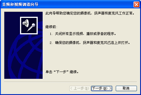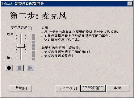選擇幫助->音頻設(shè)備配置向?qū)?圖2),會彈出“音頻設(shè)備配置向?qū)А贝翱?圖3),這個向?qū)䦷椭銓P聲器、麥克風、回音、網(wǎng)絡(luò)連接等項目進行標準的測試和設(shè)置。