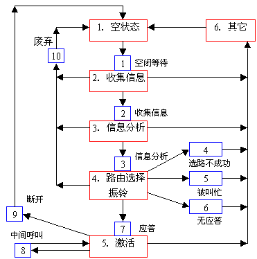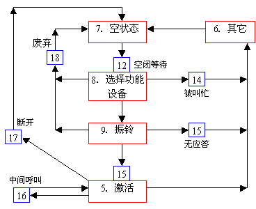 以上步驟是正常情況的呼叫處理過程,而呼叫往往因出現(xiàn)異常而不能順利地進(jìn)行,如主叫在通話前中途掛機(jī)、久不撥號(hào)、被叫忙、被叫久不摘機(jī)等都屬于異常情況。