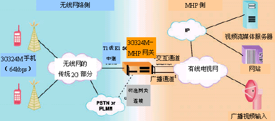如果MHP機(jī)頂盒的顯示介面做得和視頻手機(jī)終端相類似,那么,MHP Java應(yīng)用程序無(wú)需任何修改就可以被無(wú)線視頻用戶使用。對(duì)于應(yīng)用程序開發(fā)人員來(lái)說,從普通網(wǎng)關(guān)的有線電視側(cè)看,這時(shí)的無(wú)線用戶就象是一個(gè)典型的交互式電視用戶。在無(wú)線網(wǎng)絡(luò)側(cè),網(wǎng)關(guān)是作為無(wú)線視頻呼叫的標(biāo)準(zhǔn)部件出現(xiàn)的,因此兩個(gè)網(wǎng)絡(luò)都不需要做任何改動(dòng),只要增加這個(gè)連接兩個(gè)網(wǎng)絡(luò)的網(wǎng)關(guān),然后告訴無(wú)線用戶這兩個(gè)網(wǎng)絡(luò)已經(jīng)連接起來(lái)了就行了。只需要對(duì)網(wǎng)關(guān)的處理作修改,這些功能特性也可以應(yīng)用到不是遵循3G324M標(biāo)準(zhǔn)的視頻手機(jī)而無(wú)須對(duì)MHP應(yīng)用程序側(cè)作任何變更。